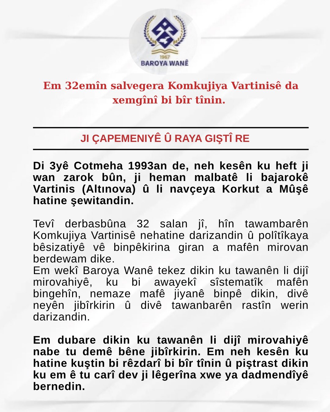 Em 32emîn salvegera Komkujiya Vartinisê da xemgînî bi bîr tînin.