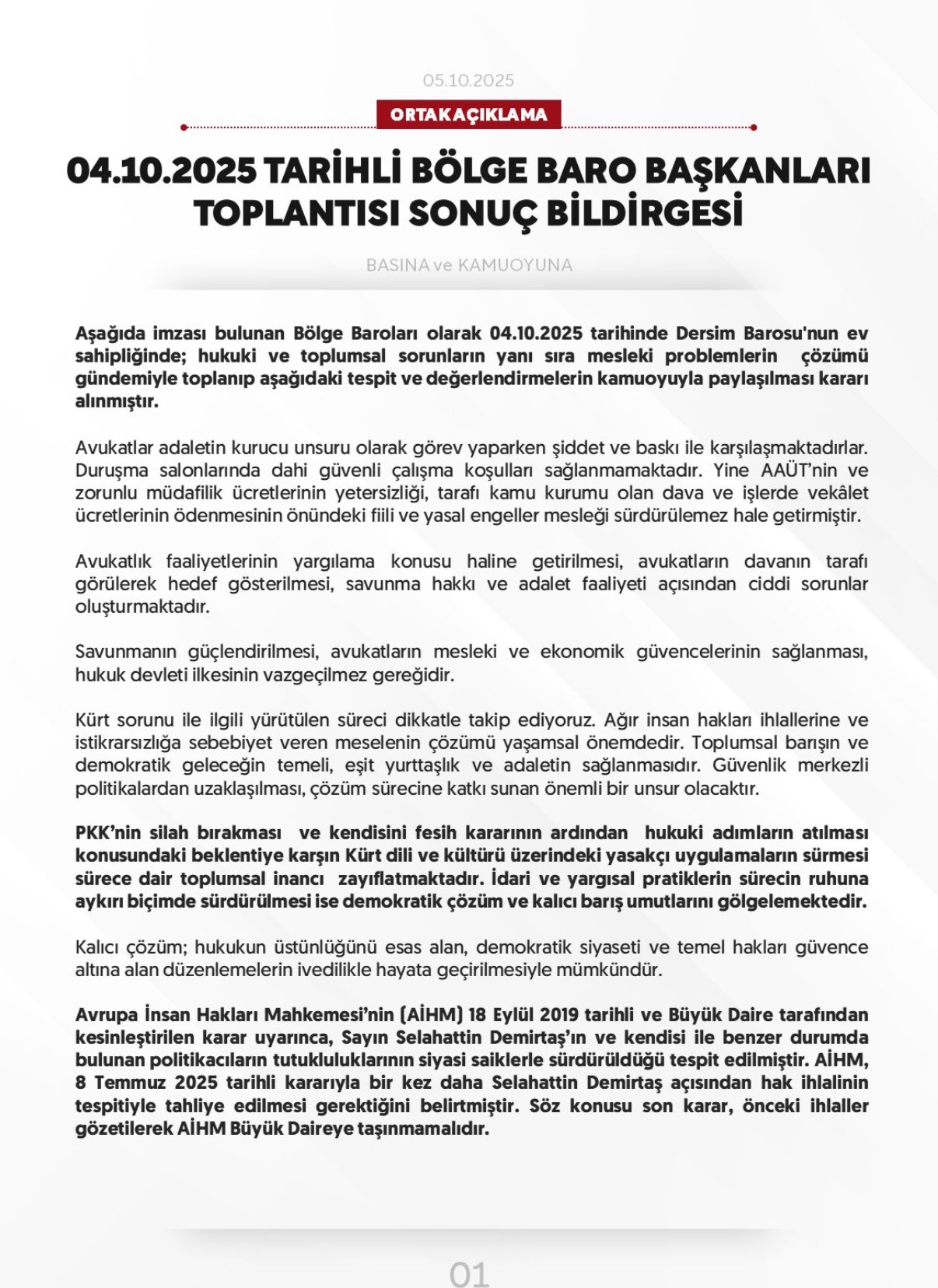 04.10.2025 / Bölge Baro Başkanları Toplantısı Sonuç Bildirgesi