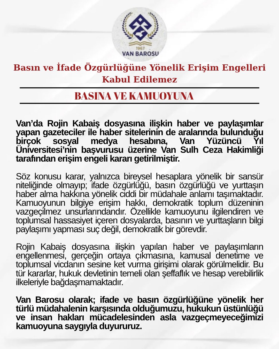 Bölge Barolarından Ortak Açıklama; Rojin Kabaiş Dosyasının Takipçisi Olacağımızı Bir Kez Daha Yineliyoruz!