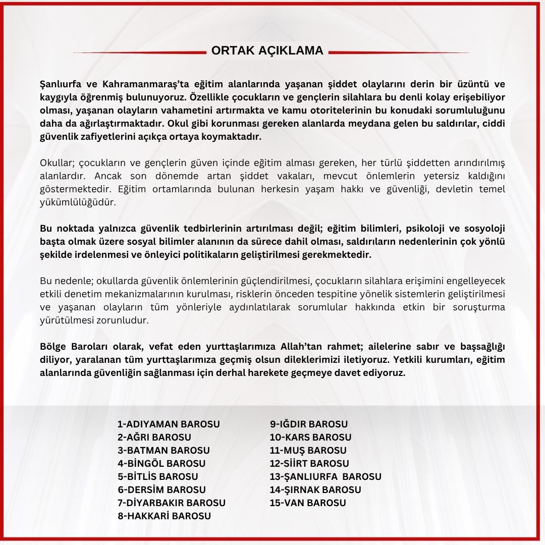 Bölge Barolarından Ortak Açıklama