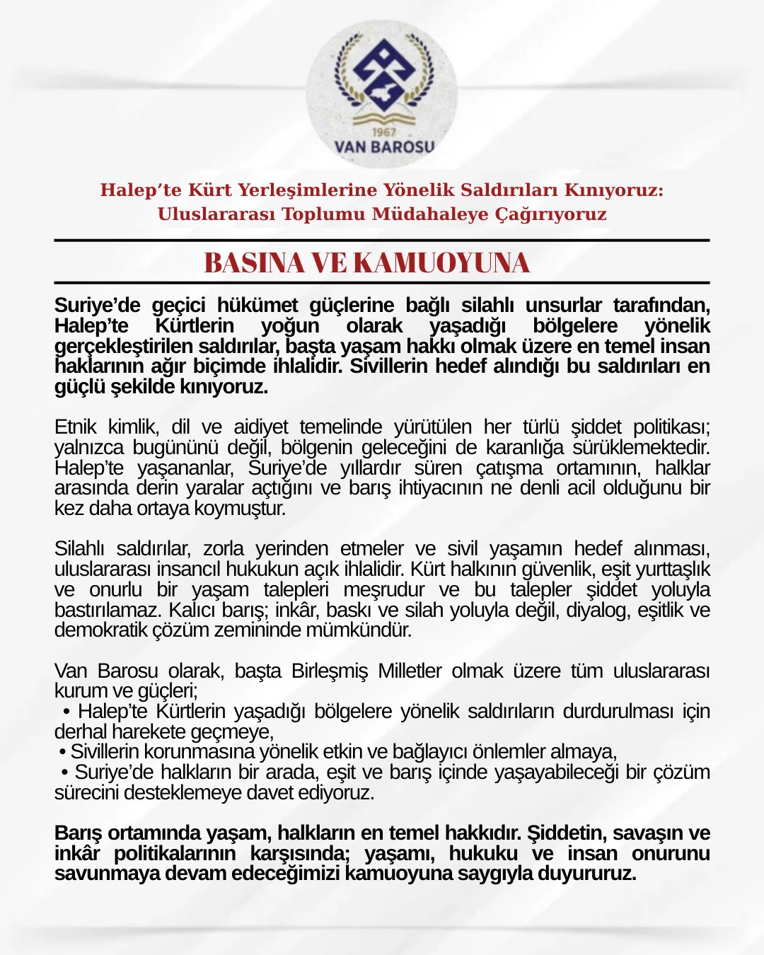 Van Barosu olarak; İHD, ÖHD, TİHV ve DADSAZ ile birlikte “Rojava’da Soykırım, Dünyada Sessizlik” Başlıklı Basın Açıklaması