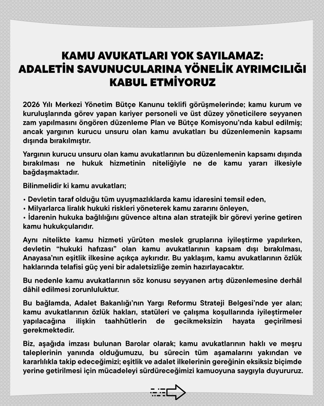 Kamu Avukatları Yok Sayılamaz: Adaletin Savunucularına Yönelik Ayrımcılığı Kabul Etmiyoruz
