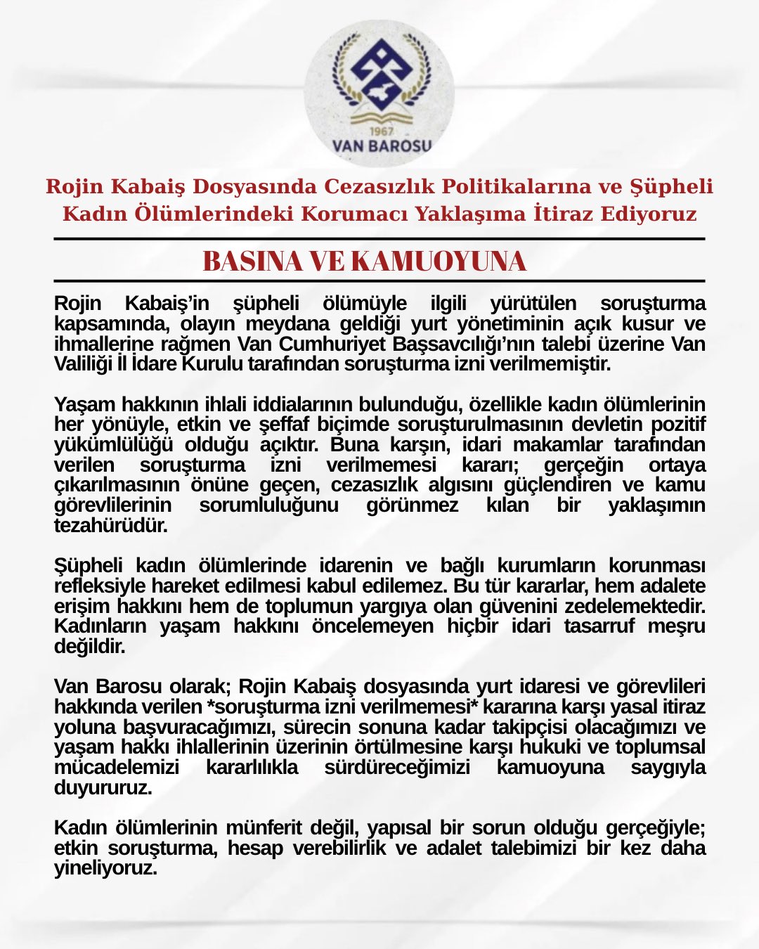 Rojin Kabaiş Dosyasında Cezasızlık Politikalarına ve Şüpheli Kadın Ölümlerindeki Korumacı Yaklaşıma İtiraz Ediyoruz