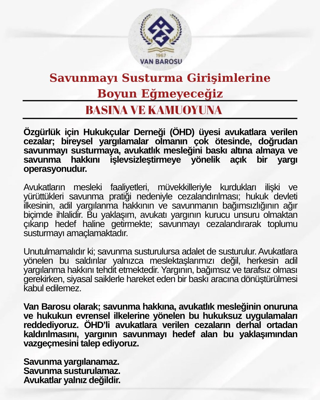 Savunmayı Susturma Girişimlerine Boyun Eğmeyeceğiz