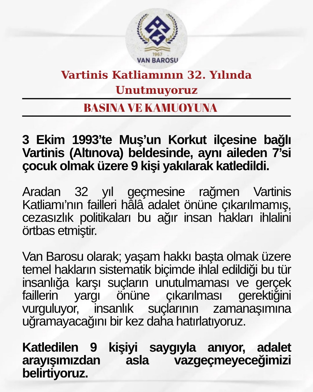 Vartinis Katliamının 32. Yılında Unutmuyoruz.